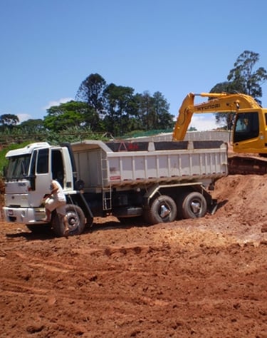 Movimentação e transporte de terra, brita e materiais de construção.